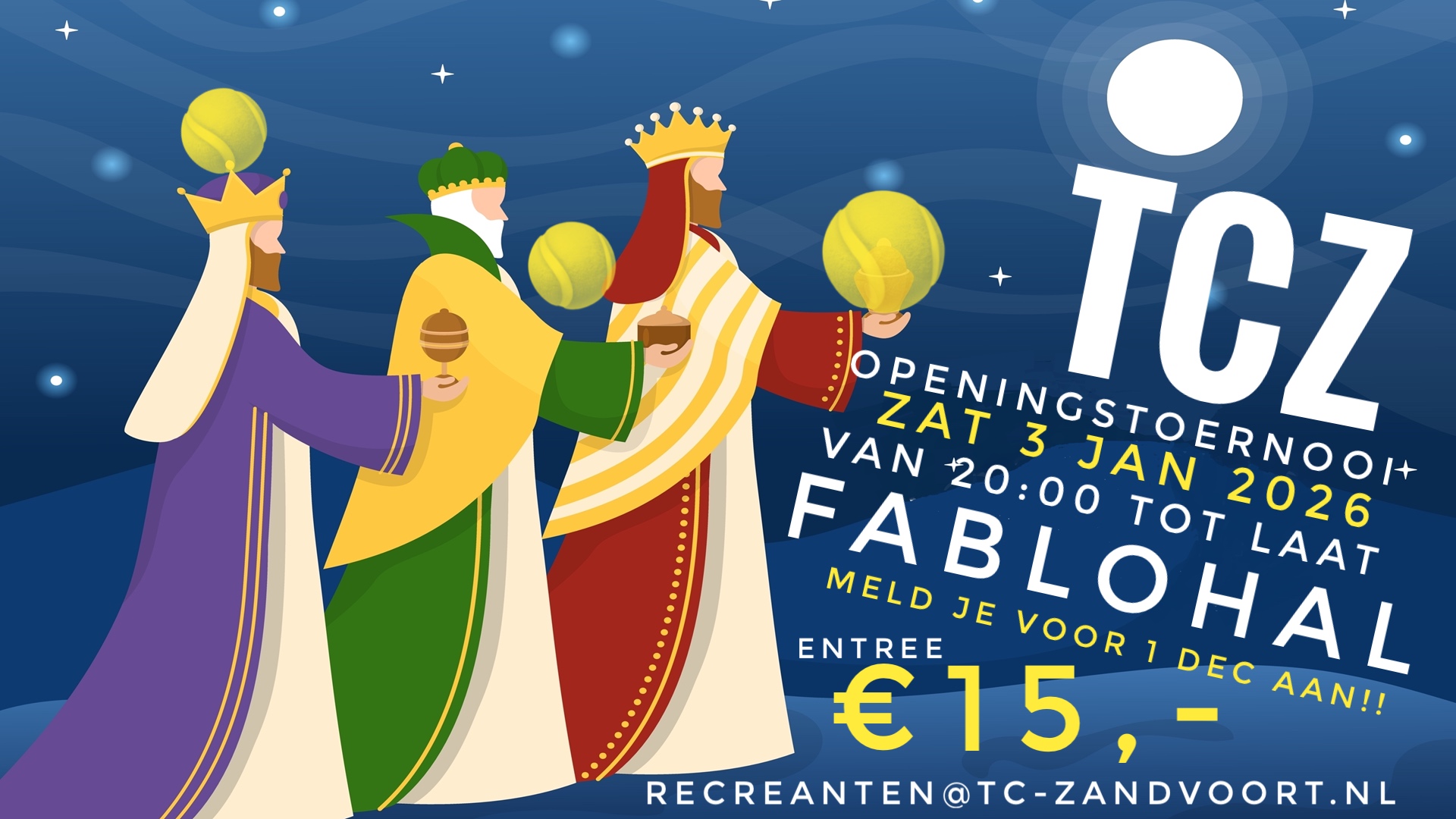 Met gepaste trots en groot genoegen presenteert de Recreantencommissie het eerste officiƫle TC Zandvoort indoortennistoernooi van 2026....
