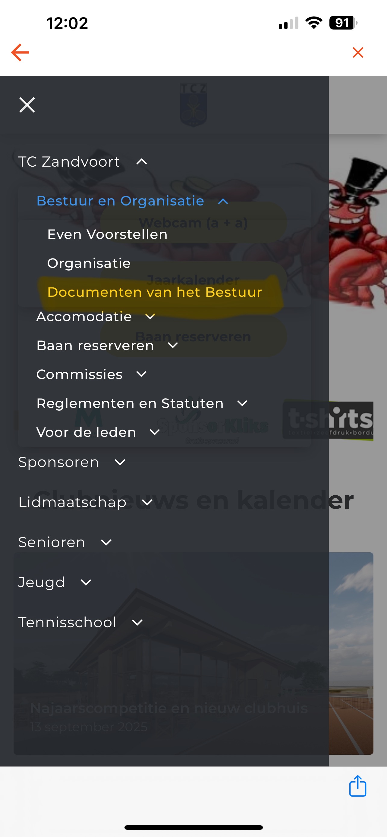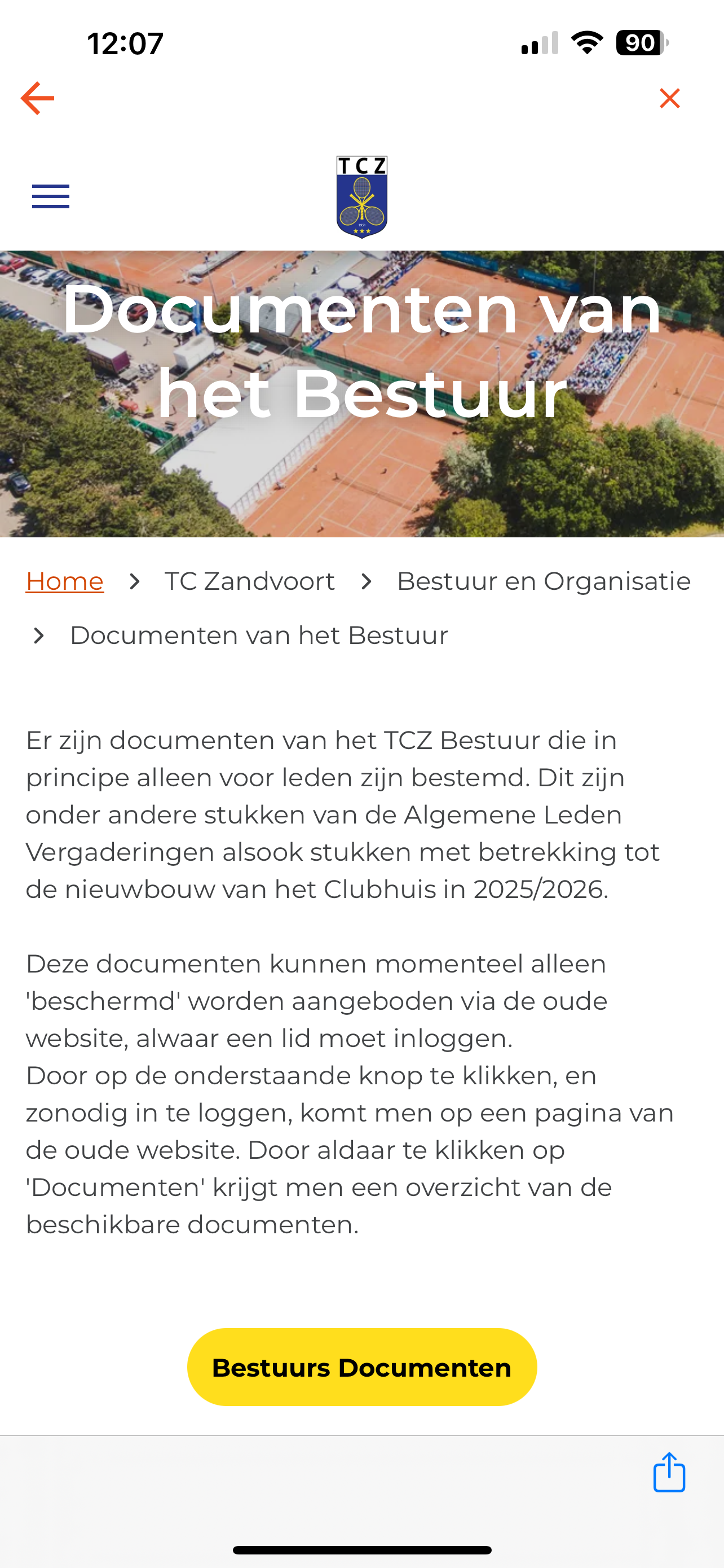 - Selecteer TC Zandvoort / Bestuur en Organisatie / Documenten van het Bestuur