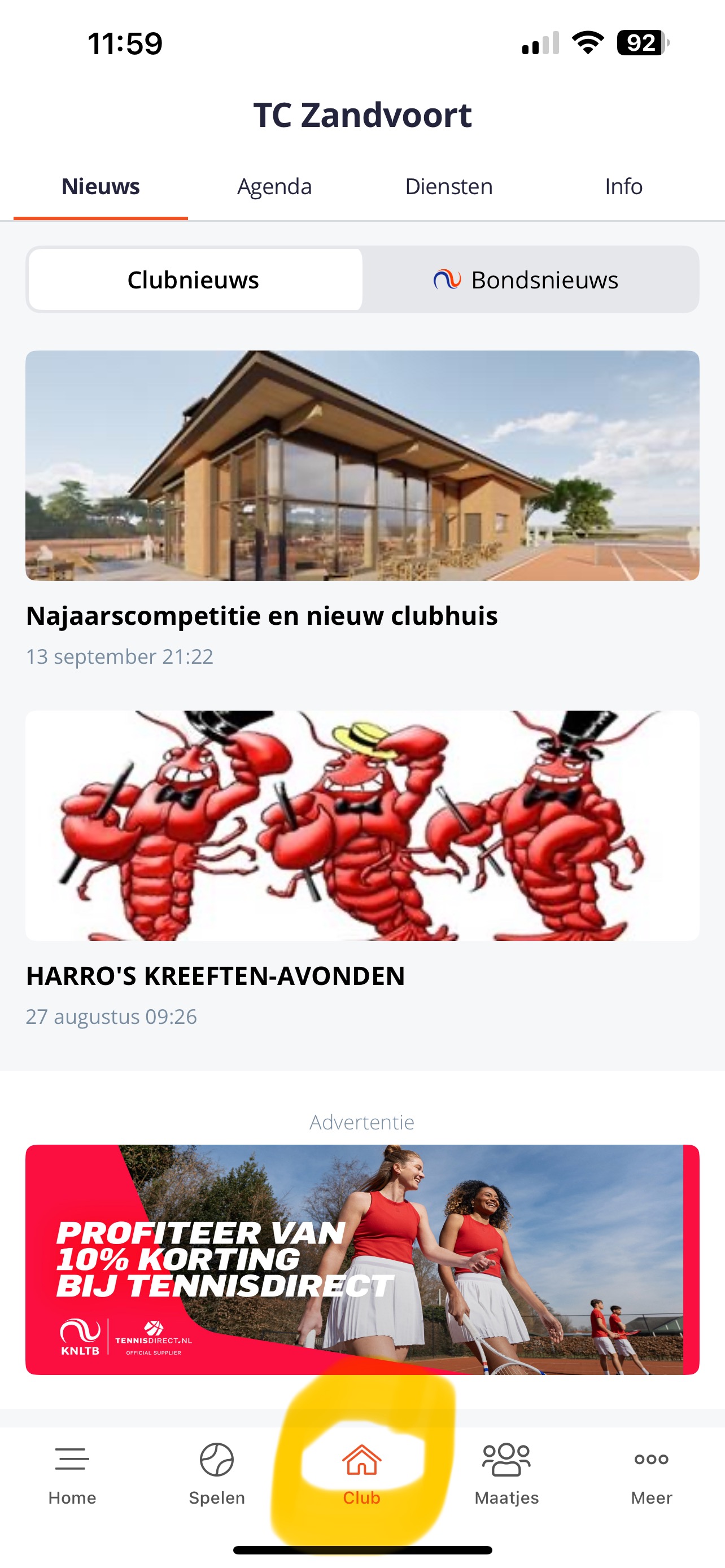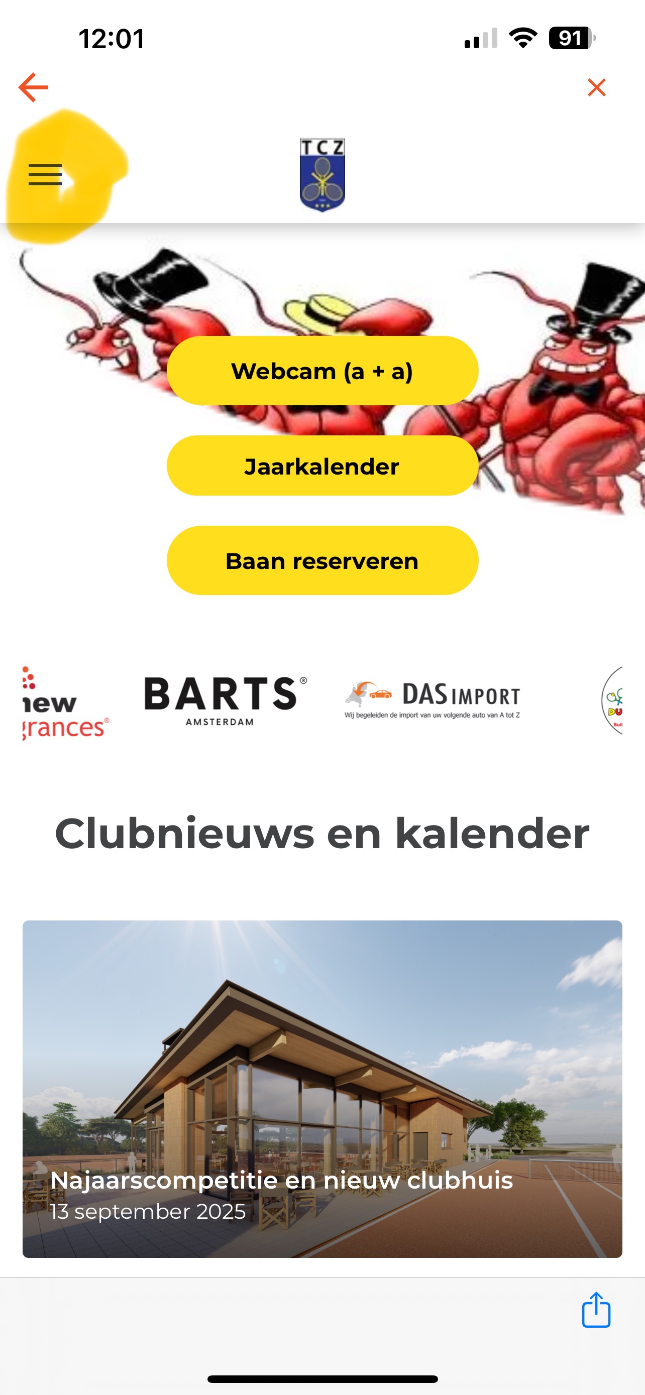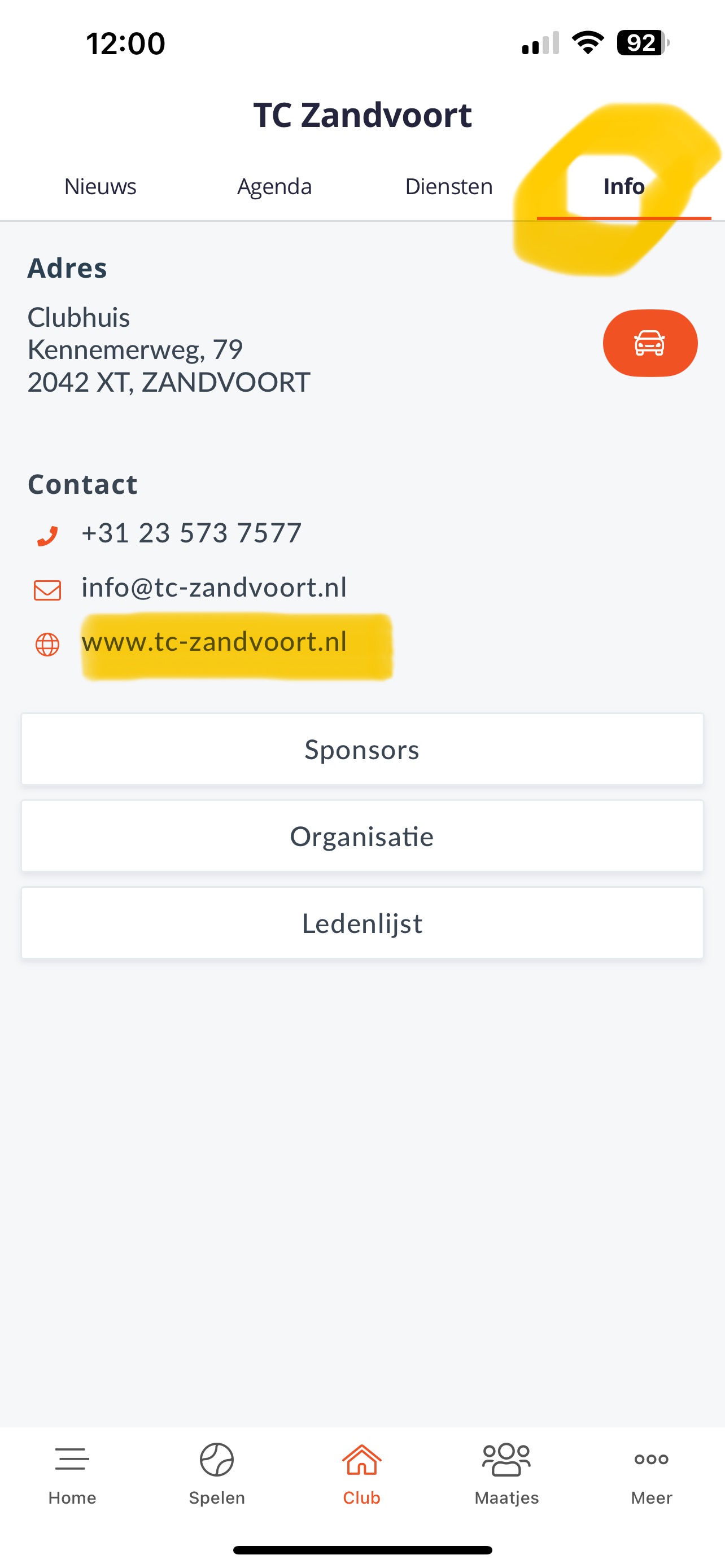 - Klik op het adres van de TCZ website: www.tc-zandvoort.nl